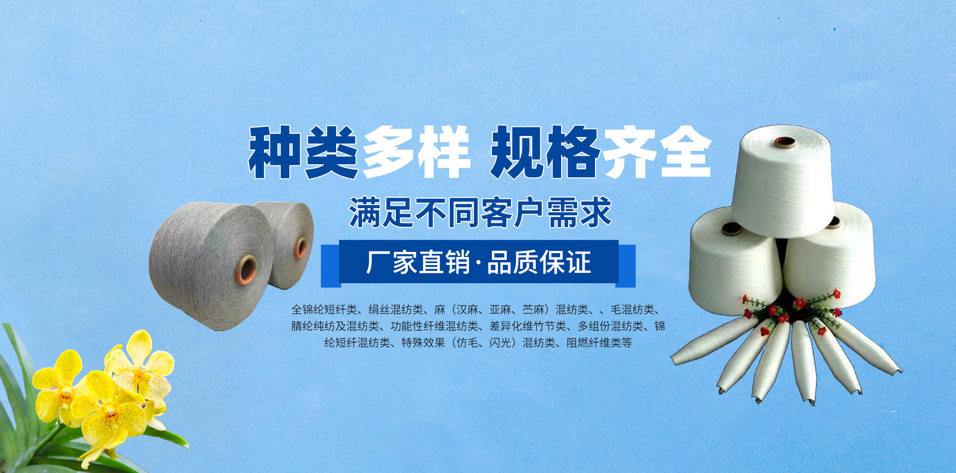 公司現(xiàn)有多種產(chǎn)品,如全錦綸短纖類(lèi)、絹絲混紡類(lèi)、麻(漢麻、亞麻、苧麻)混紡類(lèi)、毛混紡類(lèi)、腈綸純紡及混紡類(lèi)、功能性纖維混紡類(lèi)、差異化纖維竹節(jié)類(lèi)、多組份混紡類(lèi)、錦綸短纖混紡類(lèi)、特殊效果(仿毛、閃光)混紡類(lèi)、阻燃纖維類(lèi)等,可滿(mǎn)足不同客戶(hù)的需求。